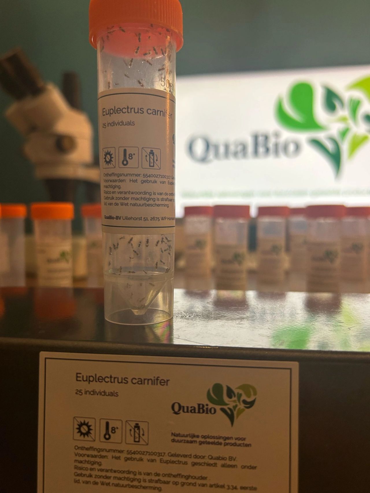 Bij QUABIO geloven we in de kracht van natuur en innovatie. We zetten ons in om nieuwe nuttige insecten te kweken en praktisch toepasbaar te maken, zodat telers hun gewassen op een milieuvriendelijke en effectieve manier kunnen beschermen en verbeteren.