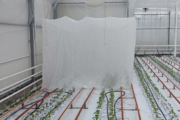 In een gesloten tunnelsysteem op de kwekerij zelf, is een kweek van de bladluis aardappeltopluis op rozen en paprikaplanten al vroeg in de teelt opgezet.